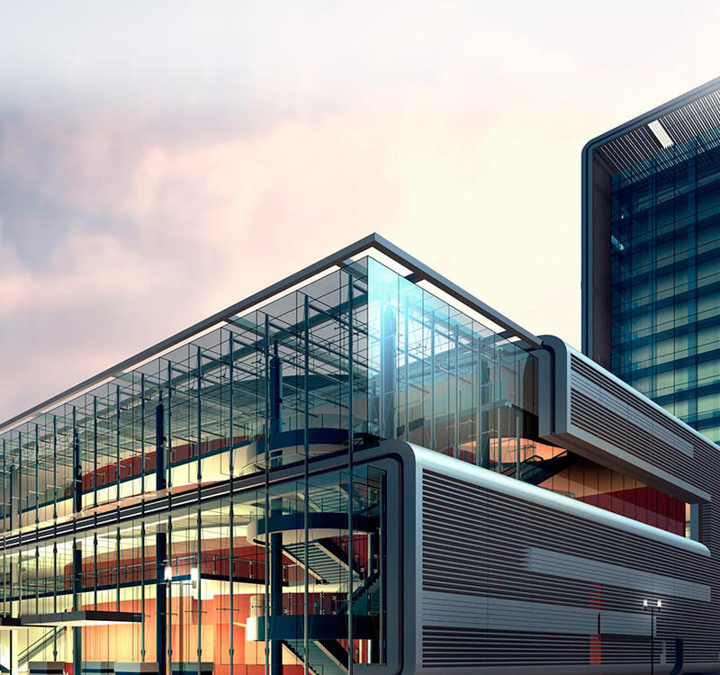 - Проектирование бизнес центров включает в себя разработку оригинального дизайна фасада, который должен привлекать внимание покупателей и одновременно гармонично выглядеть на фоне зданий, находящихся рядом.